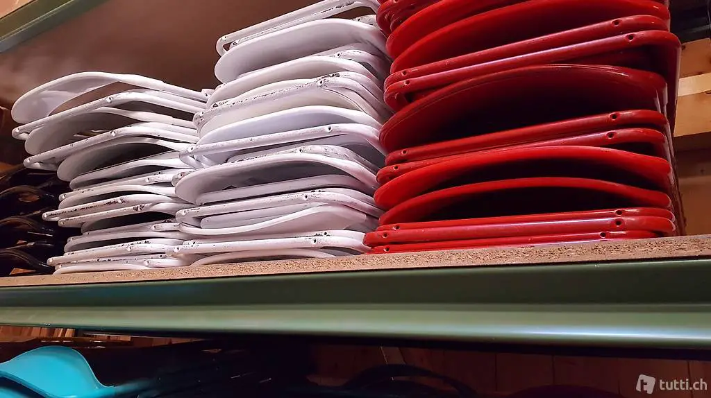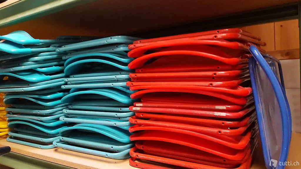 Klappstühle gebraucht in rot . gelb . schwarz . türkise . Stahrohr mit PVC nur Fr. 10.- Stück