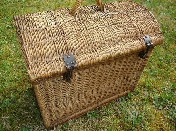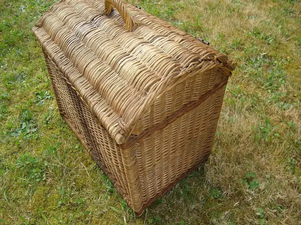 WUNDERSCHÖNER, ANTIKER REISEKORB AUS WEIDENGEFLECHT