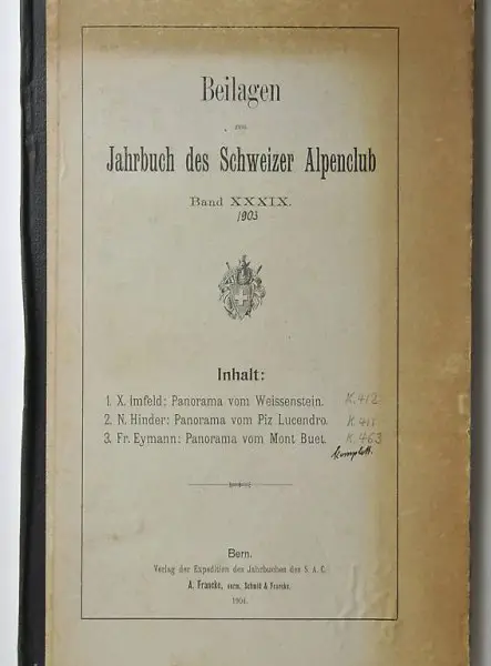 . Beilagenmappe komplett. Verlag der Expedition des Jahrbuches des S.A.C., Bern 1904. 509 S. OLn. (Name auf Titelblatt, Beilagenmappe stark lichtrandig)
