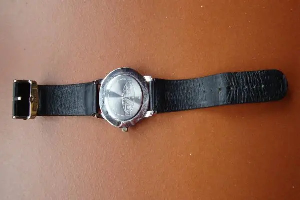 Neuwertige, aber gebrauchte, seltene Recycling Watch von Igora, hergestellt aus alten Aludosen. Analoguhr mit Datumsanzeige und schwarzem Lederarmband. Funktioniert einwandfrei.