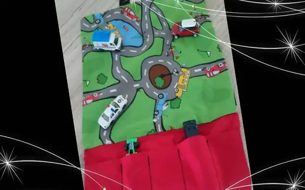 Aufgeklapt bietet die Tasche eine kleine Spielstrasse zum Spielen.