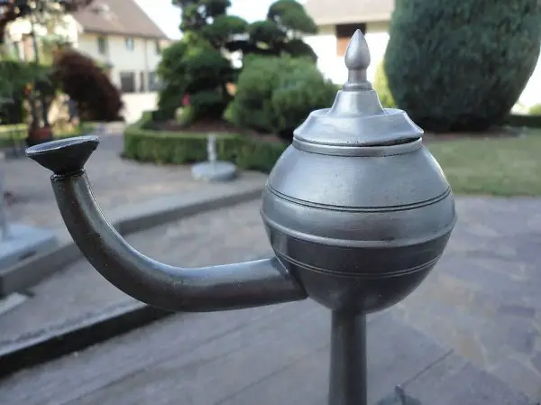alt, mit Stempel von der Lampe siehe Bild, Höhe 28cm, wird nur zusammen mit Unterteller verkauft, Versand ist möglich