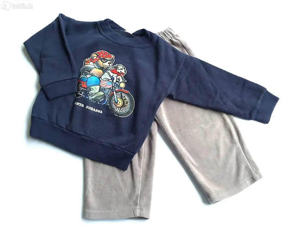 1x5.- Pyjama / Traineranzug mit blauem Pullover Bär/Töff und grauer Hose