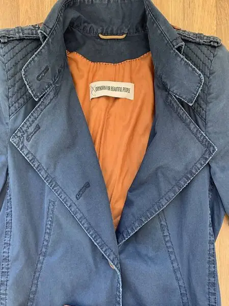 in dunklem Blau mit Innenfutter in Cognac-Farbe