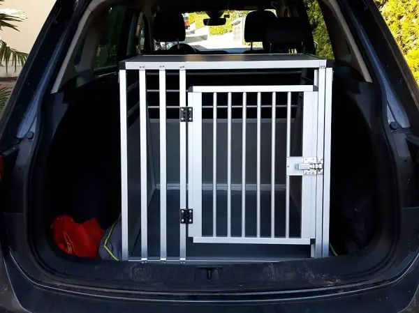 Il Box per cani in alluminio offre sicurezza e comfort durante il trasporto di cani di taglia più grande in auto.
