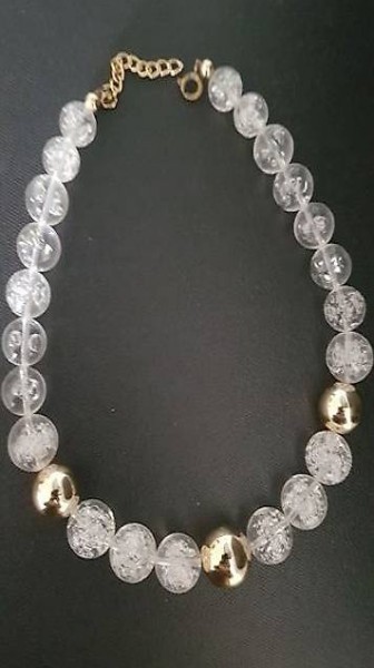 Zu Verkaufen Halskette mit durchsichtigen glasigen Blasen-Steinen und 3 goldimitations Steinen
