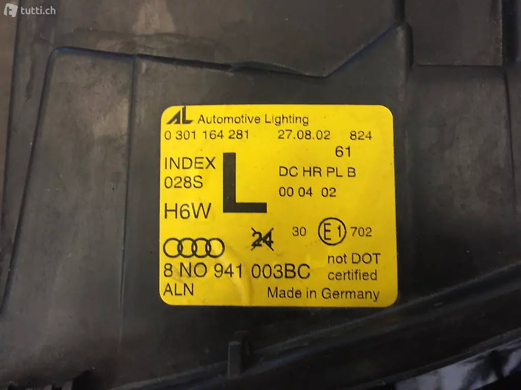 Der Streuscheibe ist noch sehr schön, der Scheinwerfer ist in sehr gutem Zustand. Zeitweise zündet er nicht. Aussen angebrachtes Steuergerät funktioniert einwandfrei. Xenonlampe funktioniert. Der Scheinwerfer ist original Audi. (Audi TT 8N)
