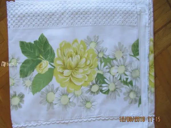 Blumenmuster plus Lochstickerei, 2 Oberleintücher sehr fein leicht und luftig, vielleicht sogar