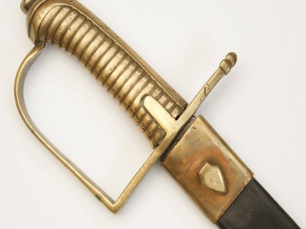 Leder, Mundblech mit Schildförmigem Trageknopf und Scheidenspitze mit