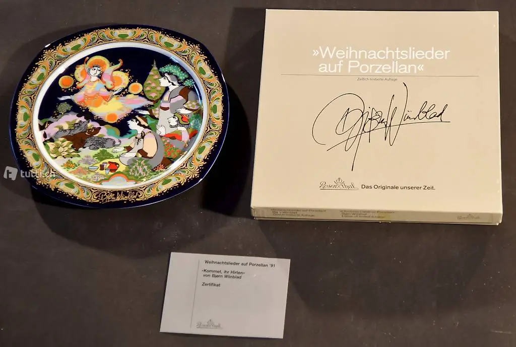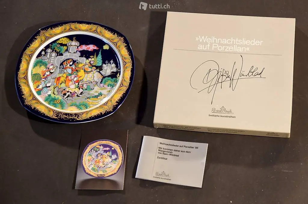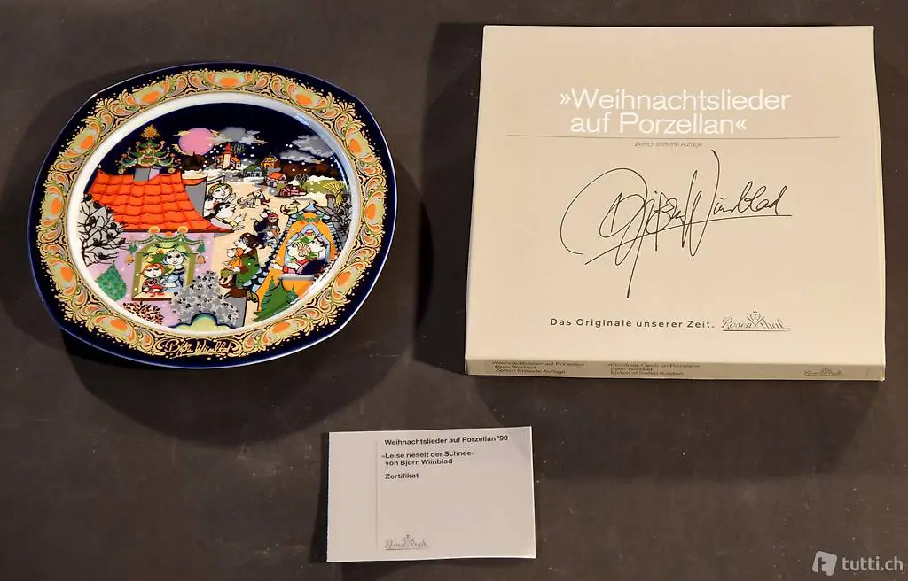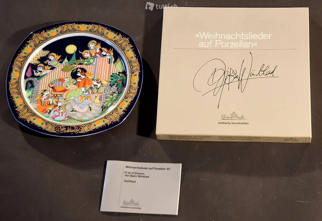 Weihnachtlieder auf Porzelllanteller, Bjorn Wiinblad, Dänemark, limitierte Kunstreihe von