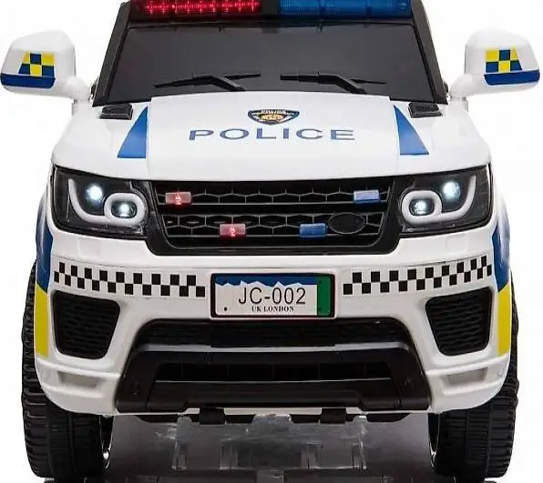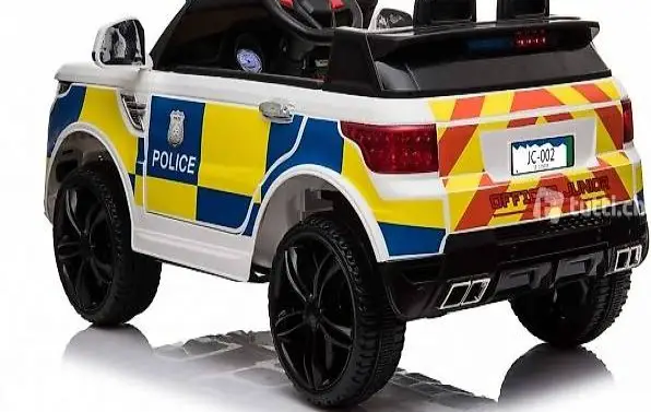 Das Kind kann selbst mit Lenkrad bzw. Gaspedal und die Erwachsenen können mit der 2,4Ghz Fernsteuerung das Fahrzeug kontrollieren. Es ist ein MP3 Anschluss eingebaut und Sound kann reguliert werden. Dank 2 x 12V Elektro Motoren hat er genug Kraft um die Kinder mit bis zu 30 kg tragen zu können. Es sind Scheinwerfer und LED.Polizei-Lichter eingebaut.
