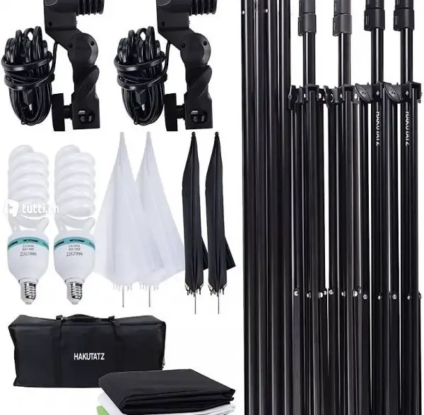 Beleuchtung- Mitgeliefert sind 2x Lampenstative mit E27 Fassung und 125W