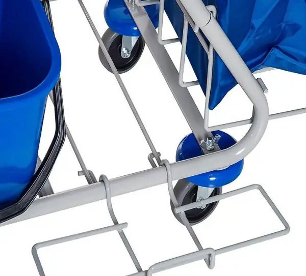 Stoff. Dort findet anfallender Müll ausreichend Platz. Dank der vier leichtgängigen Rollen lässt sich Ihr Putzwagen problemlos bewegen.