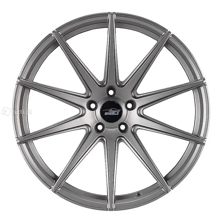 Zehn schlanke und konkav geformte Speichen in Fräsoptik sorgen für eine klassische und sportliche Optik. Lange, bis über den Felgenrand auslaufende Speichen lassen die Felge extrem gross erscheinen.