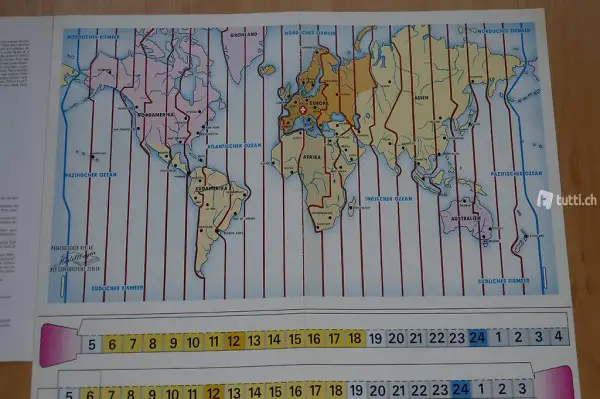Bastelbogen "Weltzeit-Uhr". Genaues Lesen der Aufträge, sorgfältiges Arbeiten, Ausdauer und Durchhaltewillen fordern und fördern das arbeitende Kind. Als Lohn winken eine grosse Genugtuung und das Gefühl, etwas geschafft zu haben sowie ein schön zusammengesetzter Bastelbogen. Zusätzlich kann immer geschaut werden, wo auf der Welt welche Uhrzeit ist. Ich besitze drei dieser Bastelbogen. Sie können einzeln oder alle zusammen gekauft werden. Der Preis ist pro Bogen.