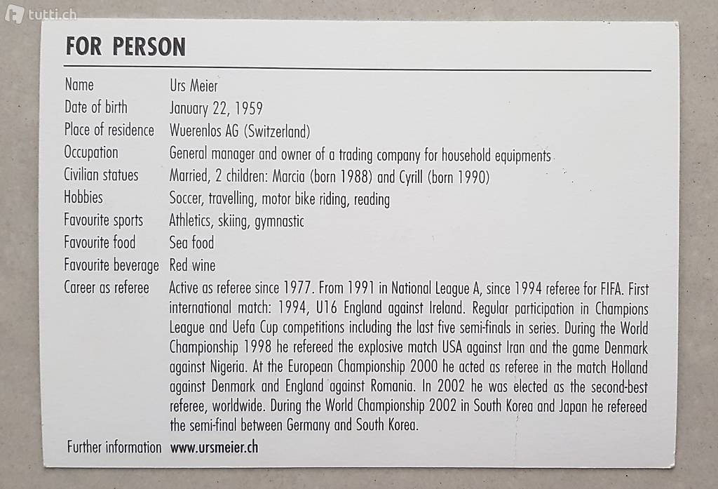 Urs Meier. In meinen Angeboten befinden sich noch weitere originale Autogramme aus der