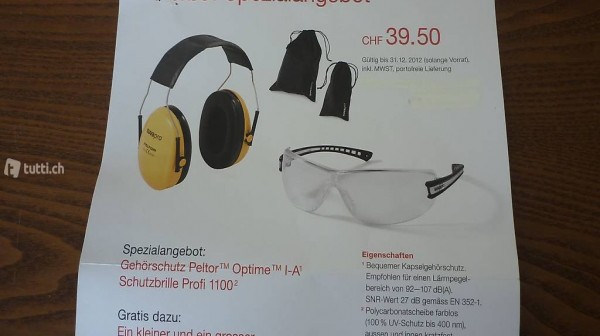 Gehörschutz Peltor Optime I-A und Arbeits-Schutzbrille Profi 1100