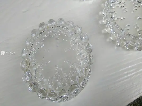 Dekorative, herzige Glas-Schalen für Dessert oder Apéro-Snacks. Durchmesser 12cm, Höhe 4cm. Per sofort. Versand gegen Unkosten.