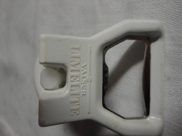 1 mal von Valser Wasser mit Flaschenöffner integriert, durch das Herunterklappen des Oberteils wird Luft in die Gummilasche gestossen, so dass es keinen oder nur einen mässigen Kohlensäure Verlust gibt, die Blöterli bleiben lange im Wasser enthalten Fr 10.-