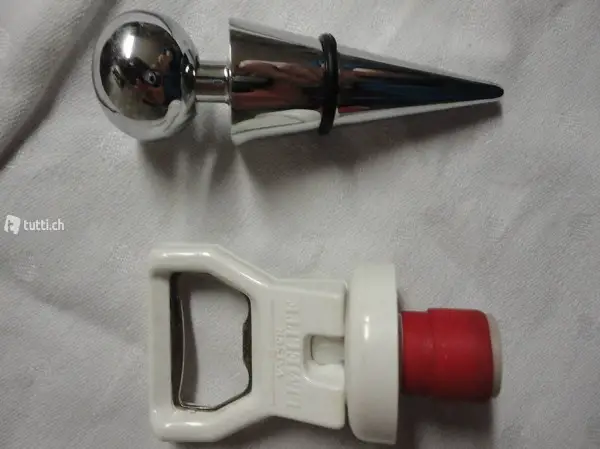 1 mal edel, Chromstahl mit Gummiring, Gummiverschluss, Grösse 10 cm, schwer und ideal für die teureren Spirituosen, Weine oder Schnäpse, individuell in der Grösse, da es in den Spitz verläuft Fr 20.-