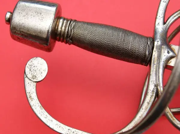 Griffbügel mit Scheibenende, in Parierstange übergehend