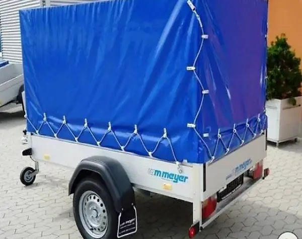 Einachser mit Auflaufbremsen und Rückfahrautomatik, wartungsfreie Gummifederachsen, 2 Radkeile, Stützrad, V-Deichsel. Aluminiumwände, hintere abklappbar, Siebdruckholzboden. Blachenaufbauten in verschiedenen Höhen erhältlich. Im Grundpreis ist der