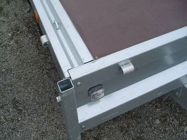 Alle vier Alu-Bordwände können abgeklappt oder demontiert werden. Eckpfosten abnehmbar, wetterfester Siebdruck Holzboden.