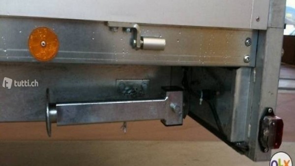 3mm Stahlboden feuerverzinkt, seitlich bis unter die Brücke umlaufend mit 4 Binderingen, Sicherungsstütze, Alu-Bordwände eloxiert 36cm, alle vier Wände abklappbar, hinten auch pendelbar, alle 4 Eckpfosten abnehmbar.