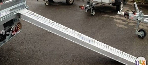 Inkl. 1 Paar Aluminiumrampen 250x30cm, Tragkraft 2800kg /Paar, werden unter der Kippbrücke im Rampenschacht gelagert. Inkl. 1 Paar Kurbelstützen hinten montiert mit Kurbel für das Anpassen der Kurbeln.
