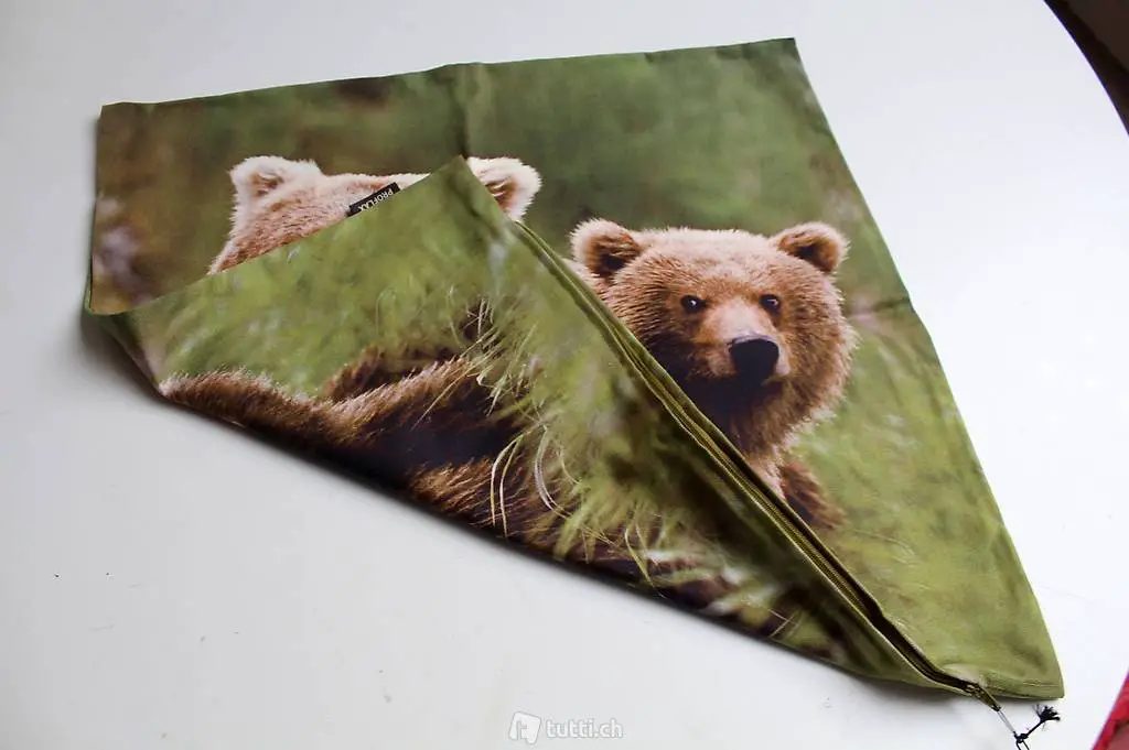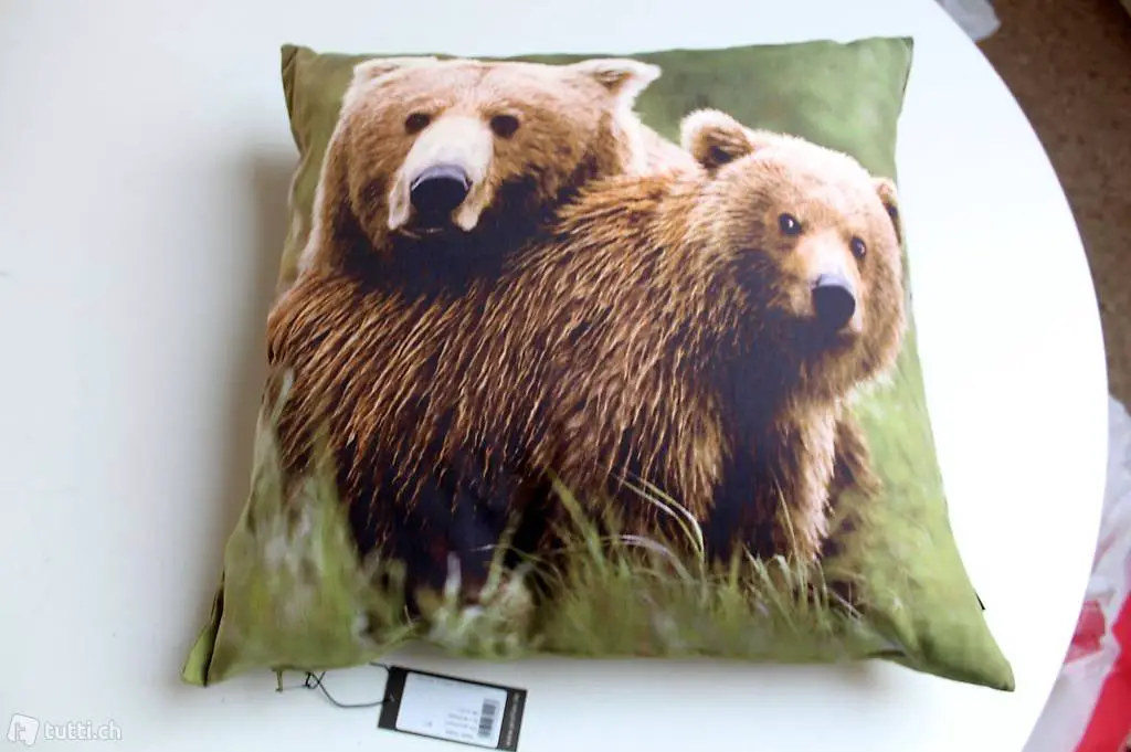 Kissenhülle grün/braun Motiv Bären