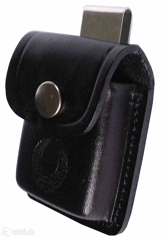 E-Estuche por encendedor Zippo en cuero , fabricado en Japon, disponible en dos colores: negro y marròn, embalado con sobre transparente en plastico.