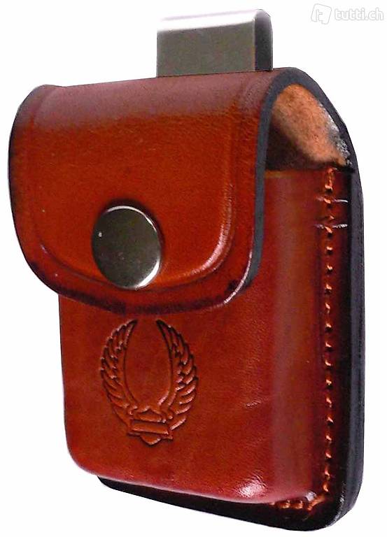 F-Etui en cuir pour briquets Zippo avec clip sur le retro, fabriqué en Japon, disponibile en deux couleurs: noir et brun. Etui fourni avec enveloppe transparent en plastique.