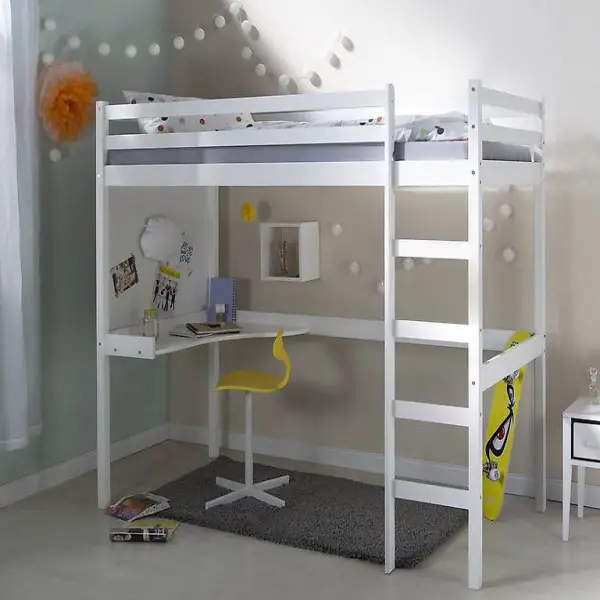 Bettgestell mit Schreibtisch und Leiter