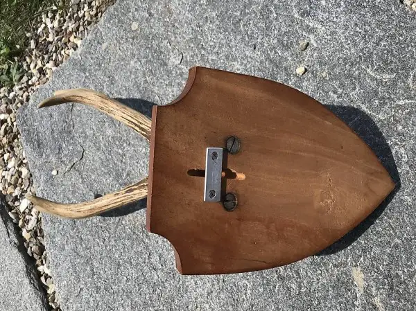 Rehgeweih auf Holzschild. Original aus dem