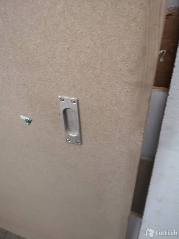 Verkaufe diese Schiebetüre wegen Umbau funktioniert einwandfrei. Masse sind breite125cm höhe212cm holzdicke3.5cm mit griffe innen und aussen. Besichtigung möglich. 076 267 30 40 schienen Länge wäre noch252cm und gesamt Höhe mit schiene222cm