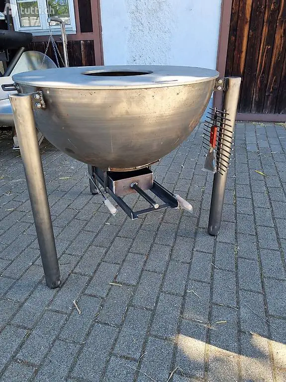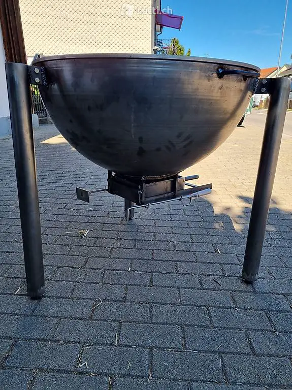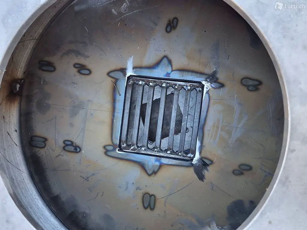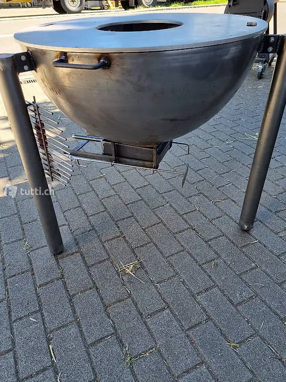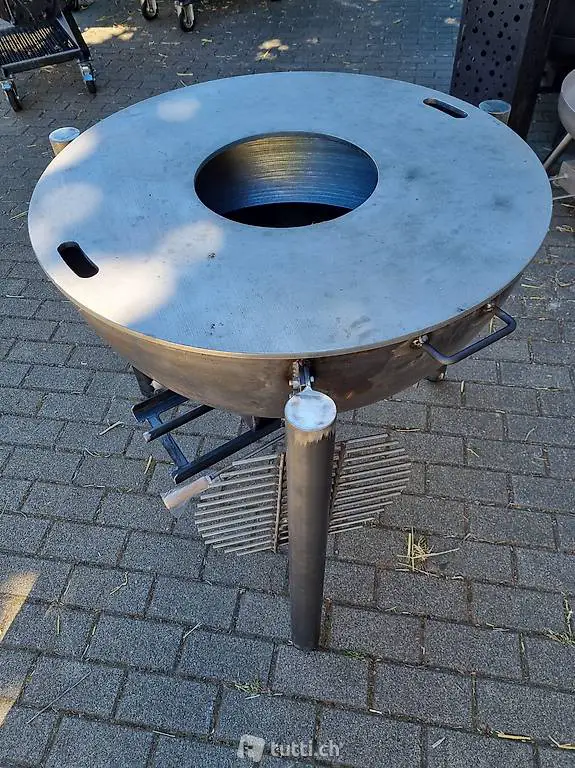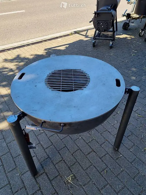 Feuerschale ist Sandgestrahlt mit Hitzebeständiger Farbe schwarz Lackiert ( Bilder zeigen roh zustand ) Beine, Rost ,Grillplatte können demontiert werden.
