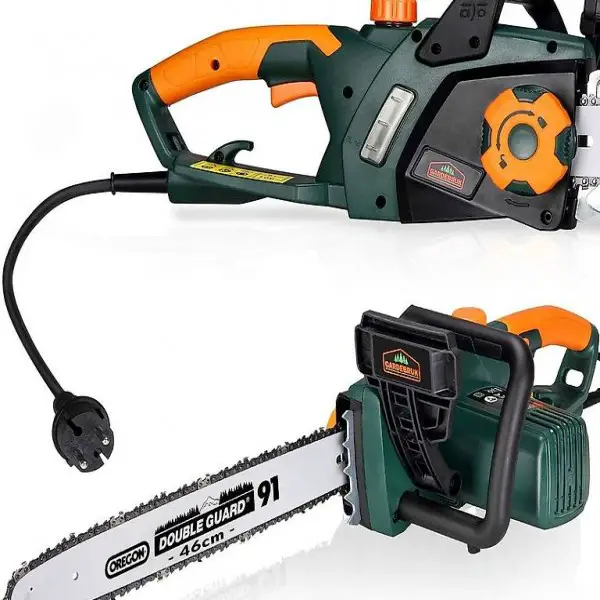Lieferumfang: 1x Kettensäge inkl. Schutzhülle | Geschwindigkeit: 16 m/s | Öltank: 150 ml Fassungsvermögen | nominale Leistung: 2400 Watt | max Leistung: 2800W