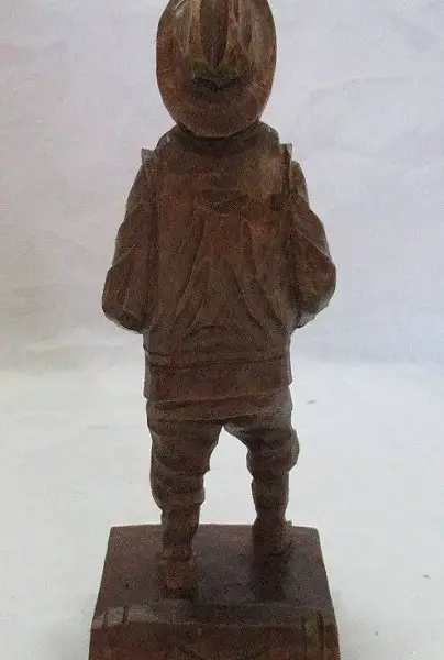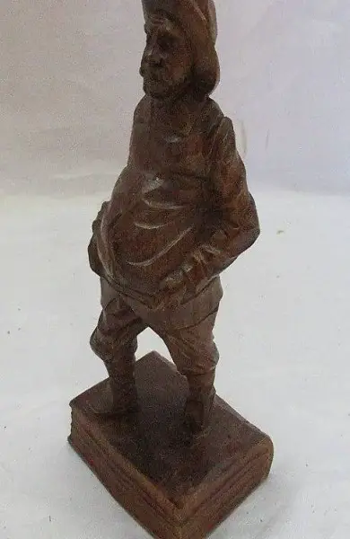 Schnitzerei eines Bauers mit dicken Bauch auf einen