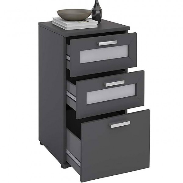 Nachtkommode in grau, mit 3 Schubladen