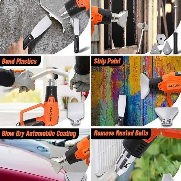 Vielseitiger Einsatz: -Für verschiedene Anwendungen steht unterschiedliches Zubehör zur Verfügung. Das Heissluftgerät eignet sich für Grillbeleuchtung, Schrumpfschlauch, Entlacken, Trocknen, Schmelzen, Schweissen und Schweissen.
