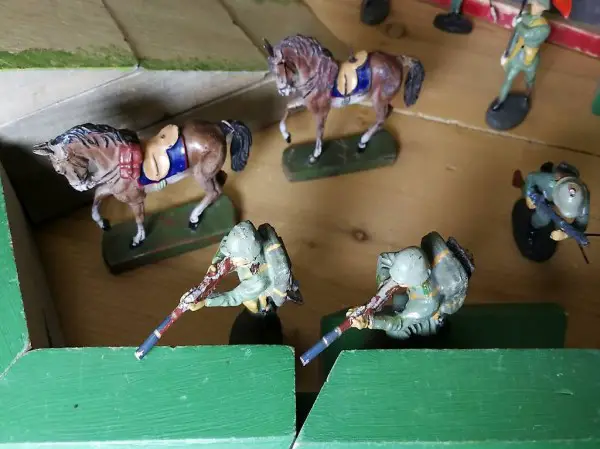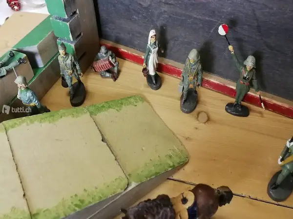 Antike Elastolin Figuren mit Burg. Ich kann nicht sagen, ob alle Figuren komplett sind aber auf jeden Fall sind sehr seltene mit dabei.