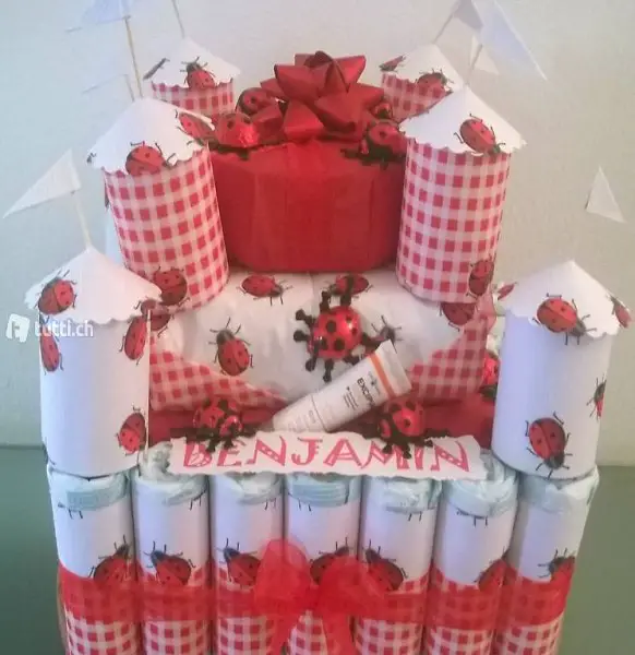 Bastle Ihr Windelgeschenk mit individuellen Wünsche (was in Coop, Migros oder Müller erhältlich ist)
