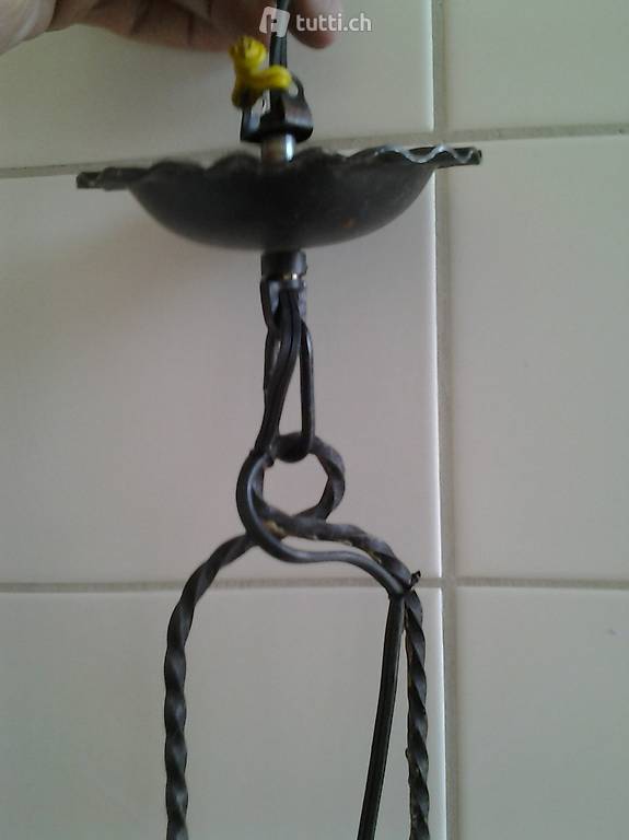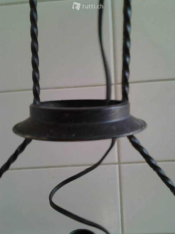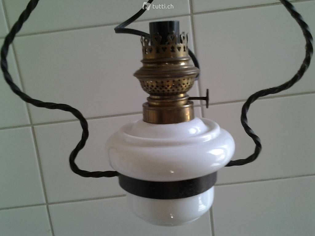 Antike Petrol Deckenlampe Schmiedeeisen mit Porzellan Behälter ohne Glashaube umgebaut auf 220V