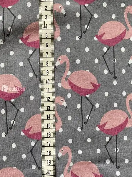 180 cm Lillestoff mit Flamingos in organic Cotton. Ungewaschen