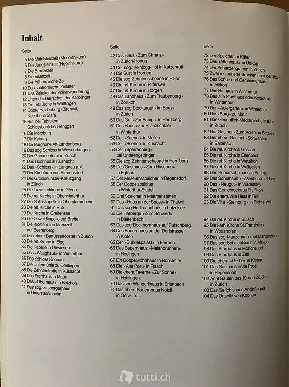 im Kanton Zürich ca. A4-Grösse, 104 Seiten mit Schwarzweiss-Fotos sowie Text zu 100 Denkmalschutz-Objekten