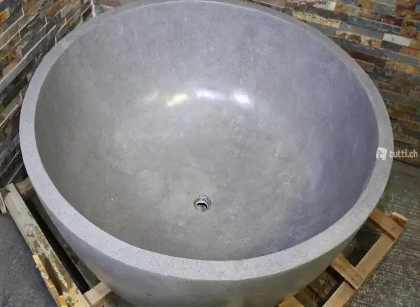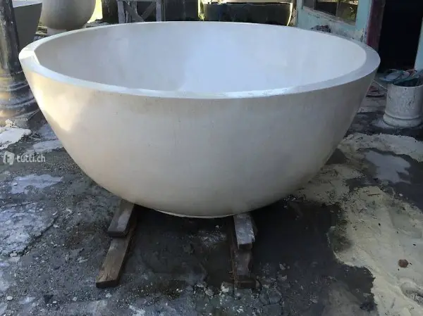 Diese Wanne wird von Hand aus Terrazzo Stein in Bali gefertigt