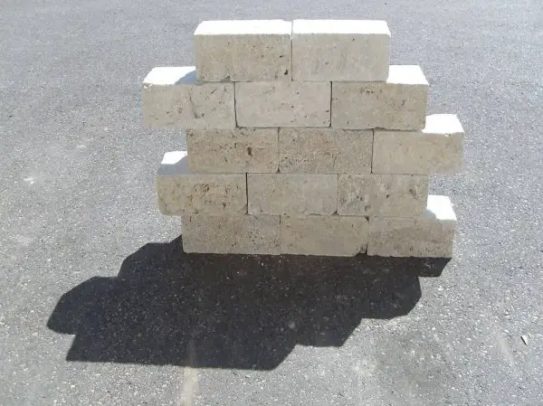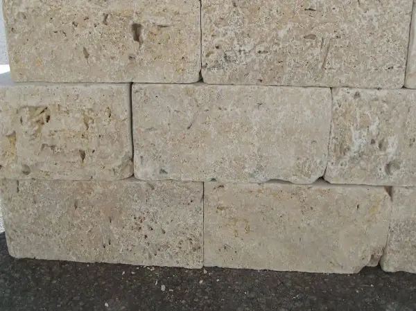 Mauersteine beige, Vorderseite und Rückseite gespalten und getrommelt,