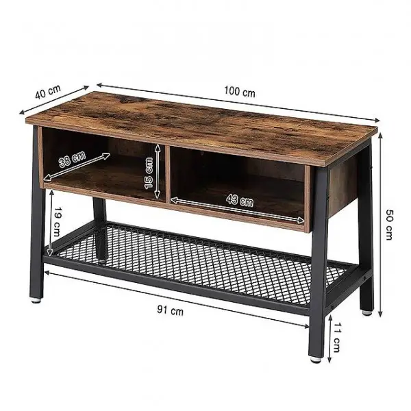 Lowboard, Wohnzimmertisch, stabil, mit Metallgestell und Gitterablage, 2 Schubladen, Used Look, Holzoptik Vintage