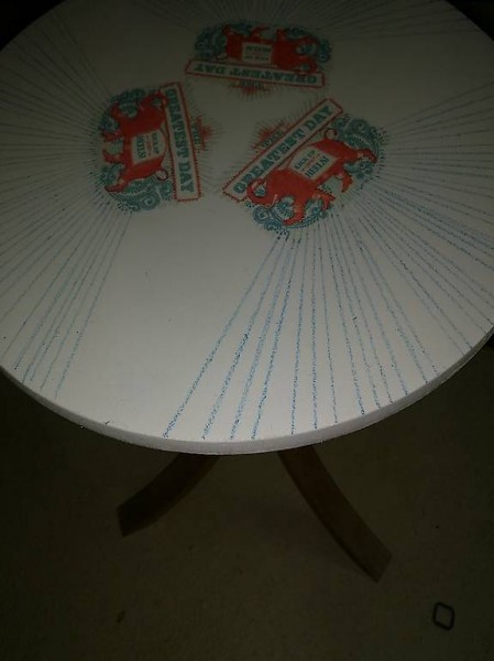 . Da er nicht mehr so schon war hab ich ihn abgeschliffen und neu lackiert und mit Serviettentechnik und malkreide simpel aufgepimmpt.
