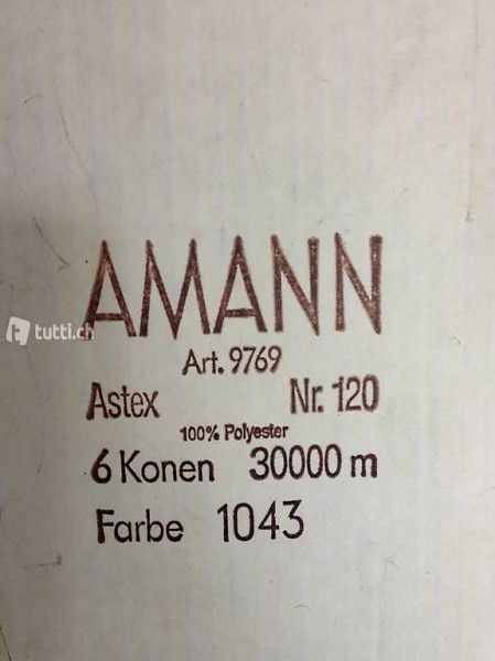Grüner Nähfaden der Marke Amann. Fadengrösse: 120 (perfekt für Overlock). Preis: 20,-- pro 30'000 Meter Spule oder 15,-- pro 30'000 Meter Spule ab 6 Spulen (14 Spulen auf Lager). Postsendung möglich, Porto zusätzlich.